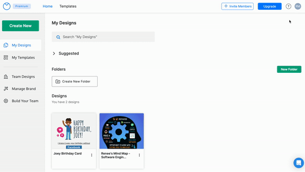 Wenn Sie Ihr Abonnement für einen Business- oder Education-Plan kündigen, sind alle Designs, die Sie in einem „Team“- oder „Klasse“-Ordner geteilt haben , nicht mehr verfügbar.