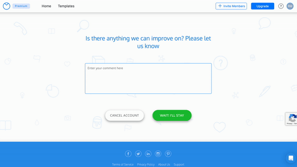 HINWEIS: Um den Kündigungsvorgang abzubrechen, klicken Sie auf „Warten, ich bleibe“ und kehren Sie zu Ihrer Kontoseite zurück, ohne Änderungen an Ihrem Abonnement vorzunehmen.