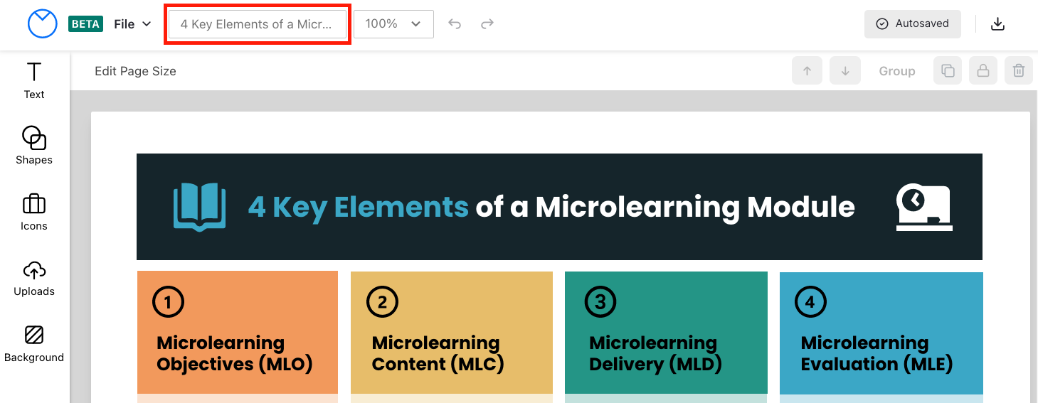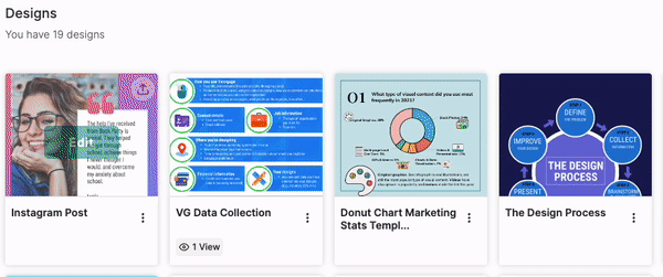 Benennen Sie die Infografik auf der Seite „Meine Designs“ um, indem Sie auf den Titel der Vorschaukachel klicken :