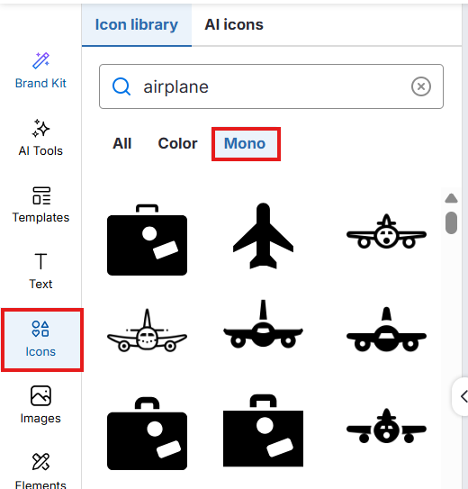 Venngage macht es einfach, auf unsere umfangreiche Bibliothek von Symbolen und Bildern zuzugreifen, einschließlich Icons8-Paketen, und sie auf Ihrer Designfläche hinzuzufügen. Sie können auch eigene Symbole mit KI erstellen, um noch mehr kreative Kontrolle zu haben.
