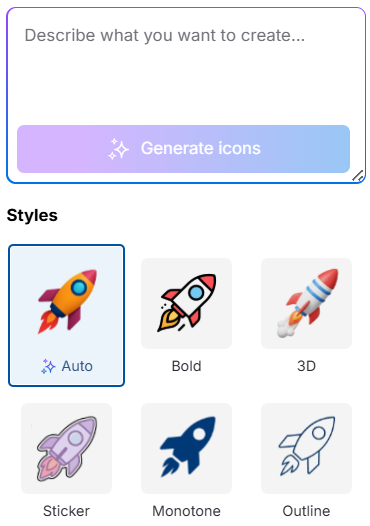 Wählen Sie einen Stil — Auto, Bold, 3D, Sticker, Monotone oder Outline.