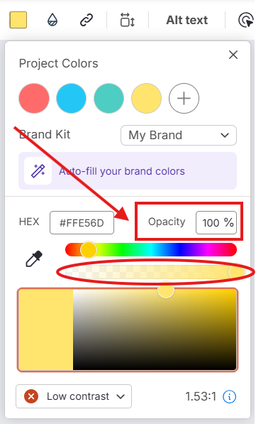 Sie können auch direkt im Farbwähler die Deckkraft und Helligkeit anpassen.