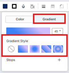Um wieder zu einer einfarbigen Farbe zurückzukehren, wählen Sie Kein Verlauf im Bereich Verlaufsstil.