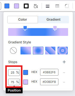 Sie können die Position einer Verlaufsfarbe ändern, indem Sie auf das Positionsfeld klicken und einen Prozentwert manuell eingeben.