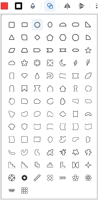 Derzeit können nur die im Shapes-Panel verfügbaren Formen oder die Duplikat-Funktion über den +-Button verwendet werden.