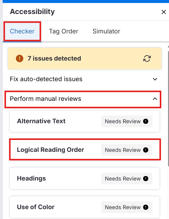 Under the Perform manual reviews dropdown, find Logical Reading Order.