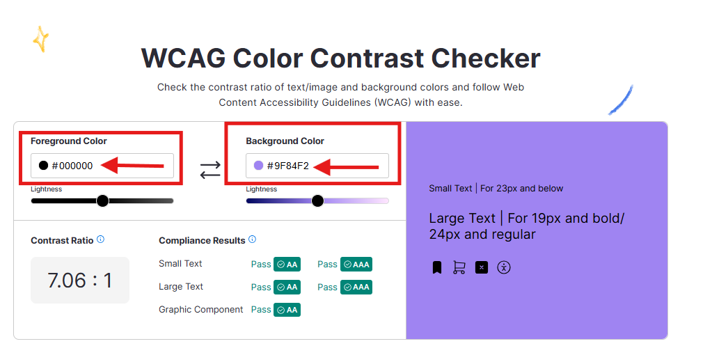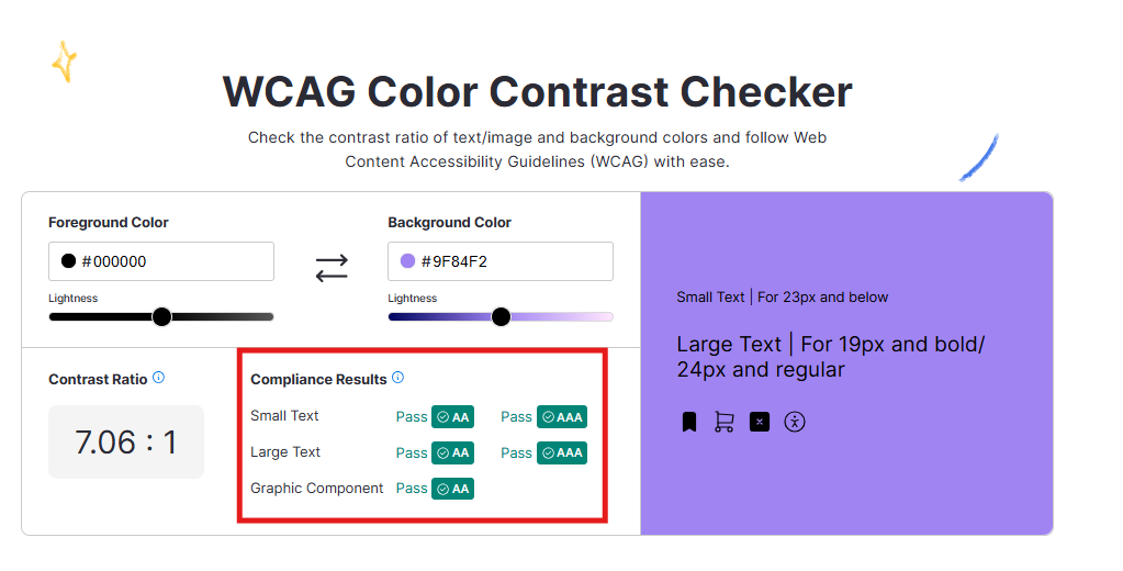 Review the Compliance Results below to see whether your color combination meets accessibility requirements.