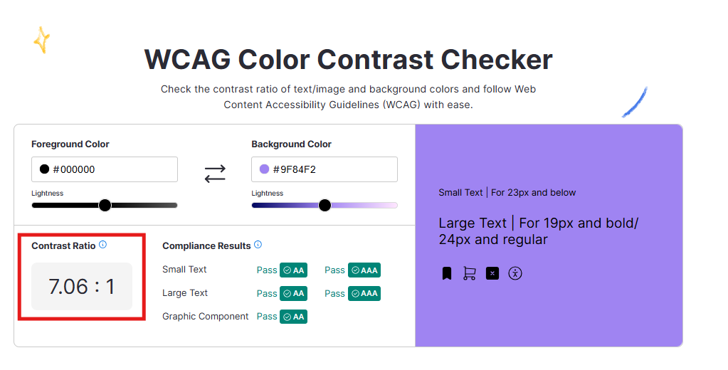 Use Venngage’s Color Contrast Checker to make sure the contrast between your text, icons, and background meets Web Content Accessibility Guidelines (WCAG) standards.