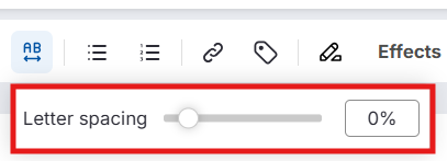 Use the Letter Spacing slider or input box to increase or decrease the space between characters.