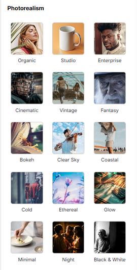 Now, you can also choose from comprehensive new style filters categorized into Photorealism and Illustration to guide the look and feel of your generated images.