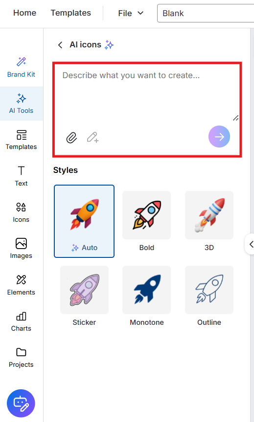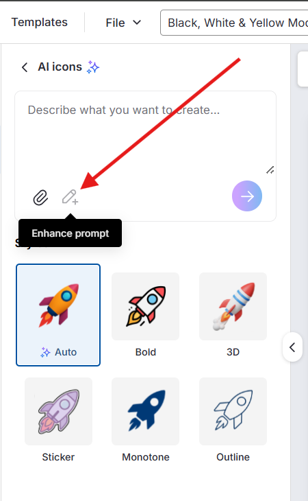 Not sure how to phrase your AI prompts? In the Icon Generator, you’ll now see a pencil icon next to the prompt box. Click it to automatically enhance your prompt with extra detail. You can review the expanded prompt, tweak it if needed, and get a more specific—and more accurate—output.