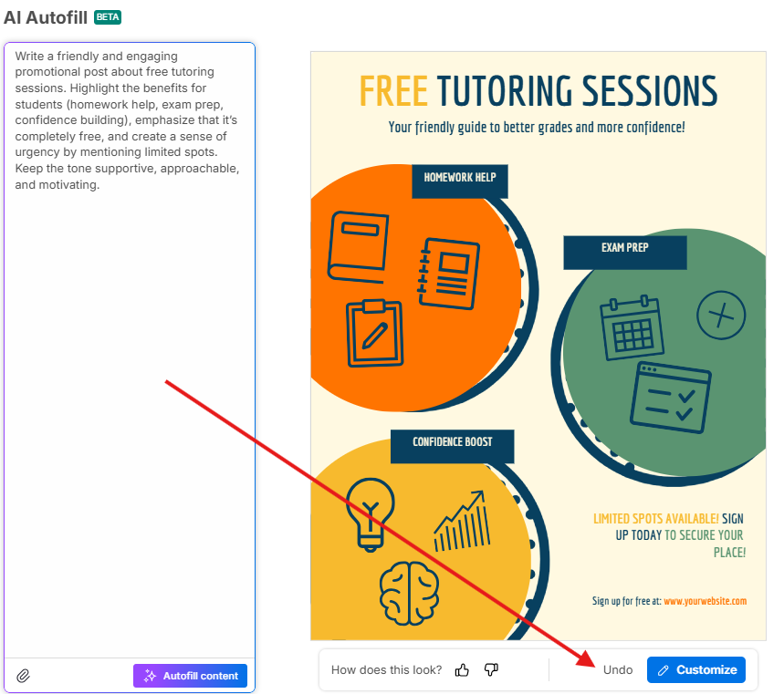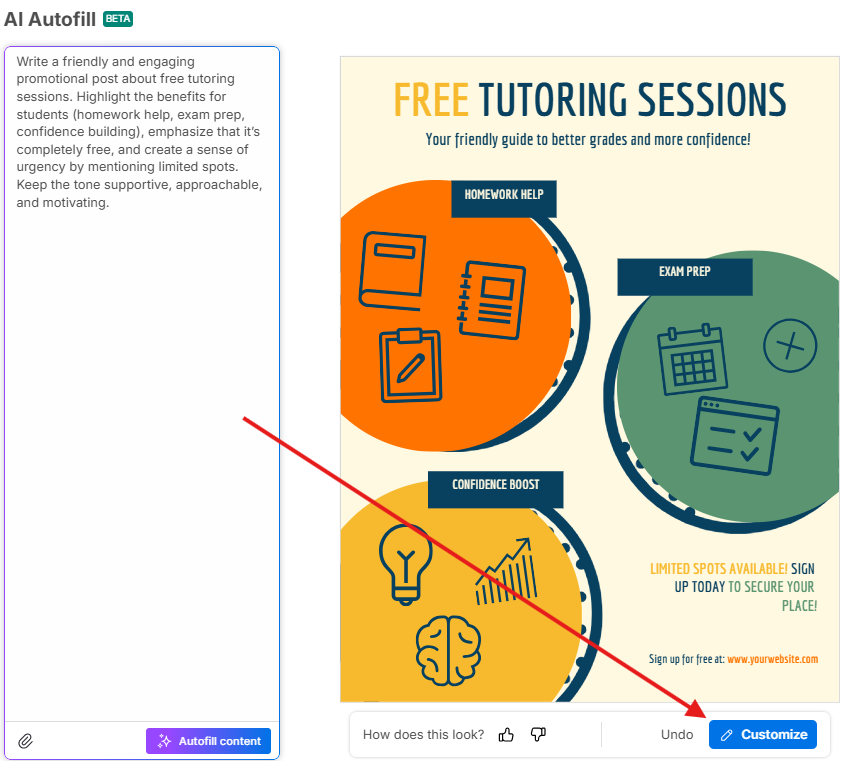 AI Autofill is best when you’ve found a template you like and simply want to update it with your own content.