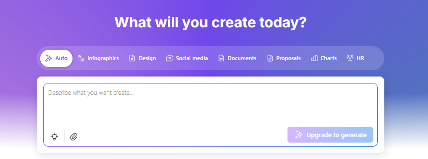 AI Design Generation (also called the Universal Generator) is best if you don’t have a template in mind and want AI to create one for you.
