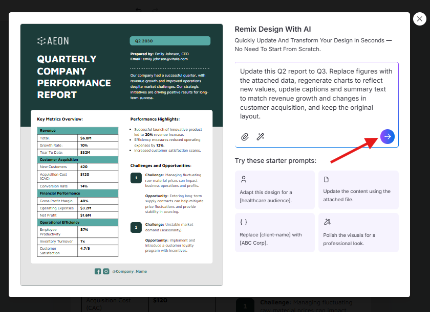 Click the Arrow button to proceed with the Remix. AI will automatically refresh the content and update the data within your design.