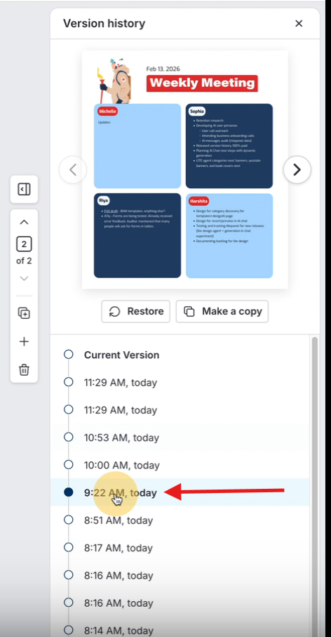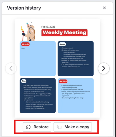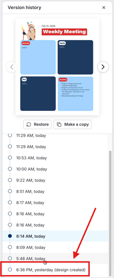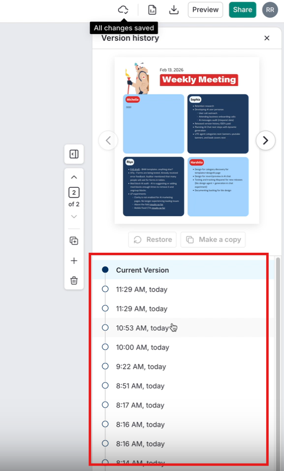 Version History allows you to view, restore, or duplicate previous versions of your design. This feature is now available to all paid users (Premium, Business, and Enterprise plans).