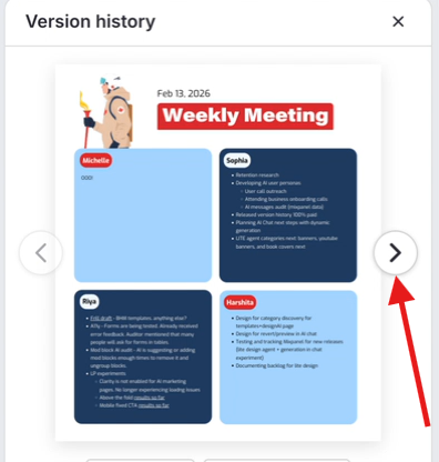 You can switch between pages while previewing older versions — just click the arrow to move between pages.