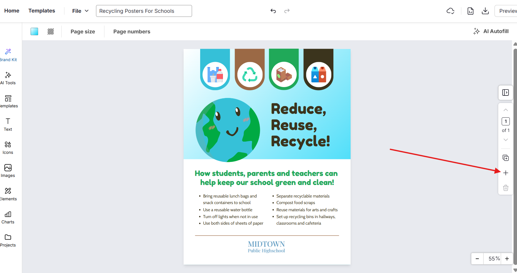 Puedes ampliar fácilmente tu diseño agregando una nueva página en blanco directamente desde la barra de herramientas del Administrador de Páginas.