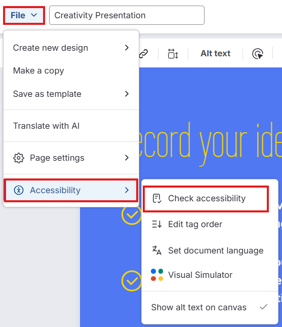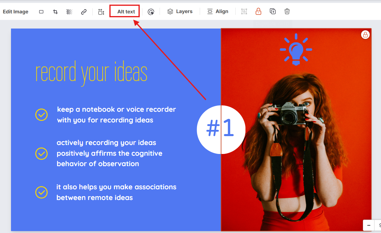 Usa la herramienta de Alt Text en el Editor de Venngage