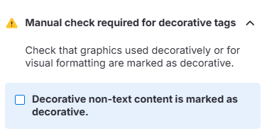 4. Cuando termines, marca la casilla al final de la sección Alternative Text para confirmar que los elementos decorativos están correctamente identificados.