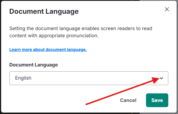 3. En la ventana emergente Idioma del documento, elige tu idioma en el menú desplegable.