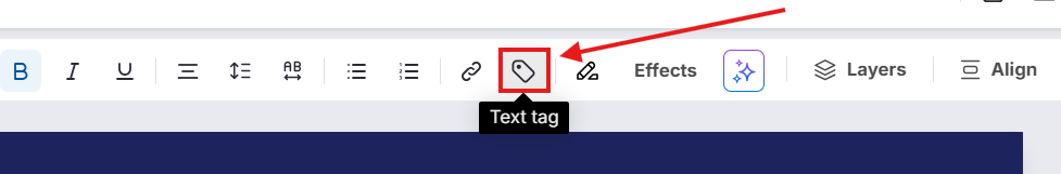 Haz clic en el ícono de etiqueta (🏷️) en el extremo derecho de la barra de herramientas superior para abrir el menú de etiquetas de texto.