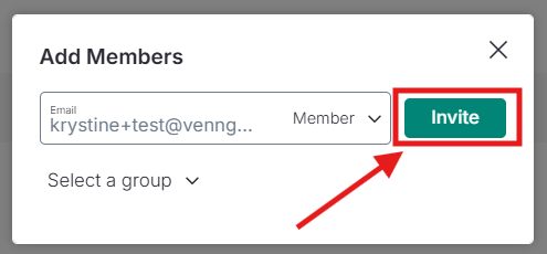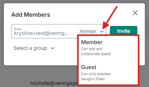 Haz clic en el menú desplegable en el campo de correo, y selecciona Miembro o Invitado.