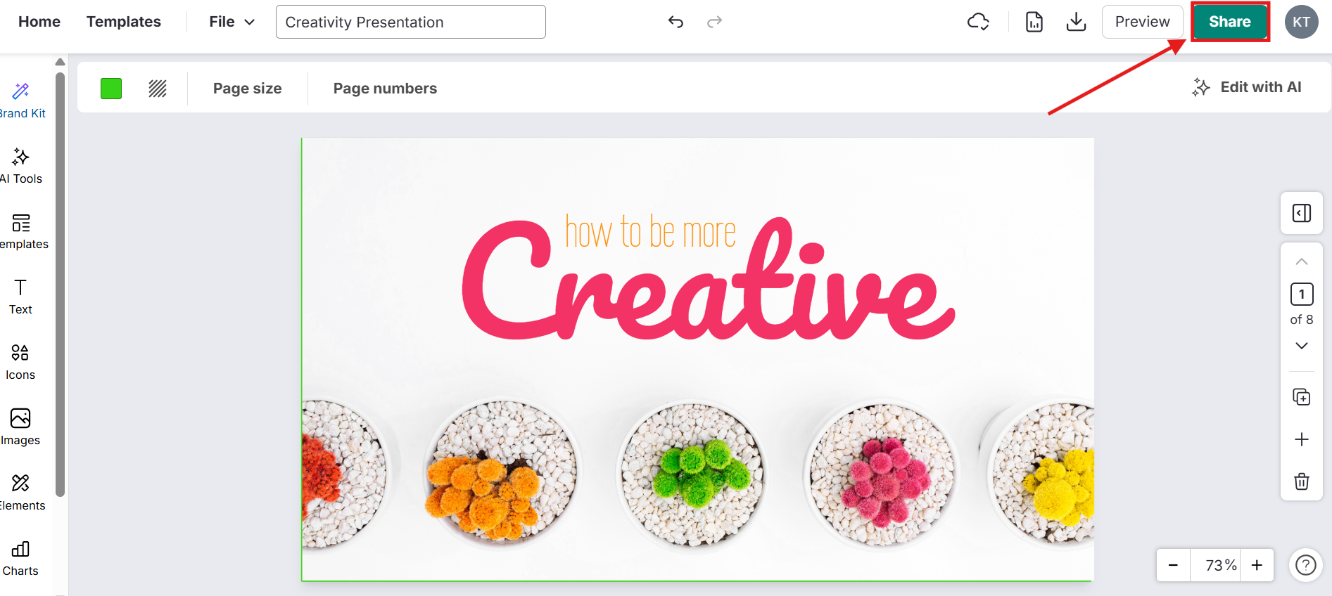 Haz clic en Compartir en la esquina superior derecha del Editor para abrir la ventana de compartir.