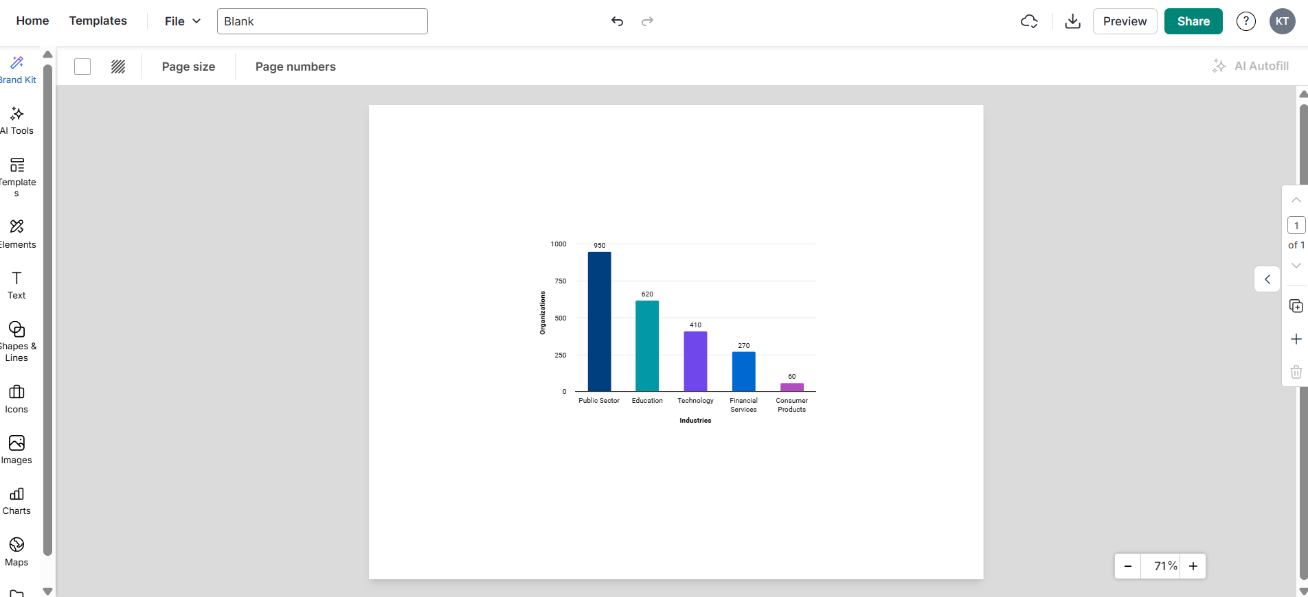 Haz clic en el botón Editar gráfico. Usando el menú Editar gráfico, puedes personalizar los datos, la configuración y las etiquetas del gráfico.