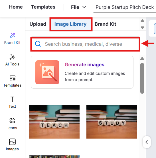 En la ventana emergente, ve a la pestaña Biblioteca de imágenes (Image Library).