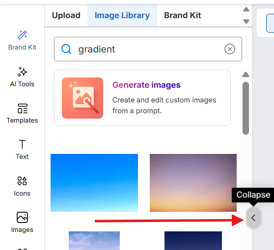 Haz clic en la imagen de gradiente que prefieras y redimensiónala para ajustarla al lienzo de tu diseño usando las esquinas y bordes.