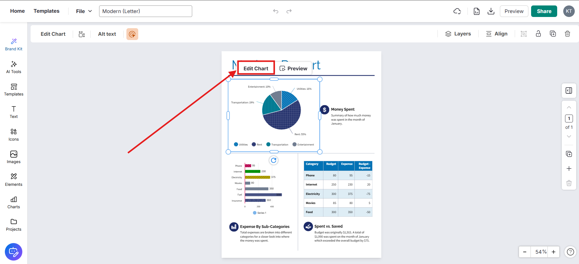 Haz clic en el botón Editar Gráfico que aparece sobre el propio gráfico.