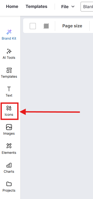 Haz clic en Icons en la barra lateral izquierda del Editor.