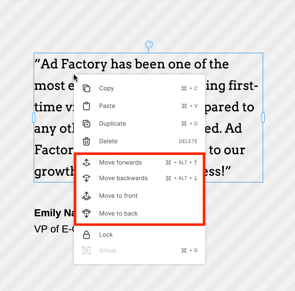2. Haga clic derecho en el elemento y aparecerá el menú contextual. Seleccione una posición de capa.