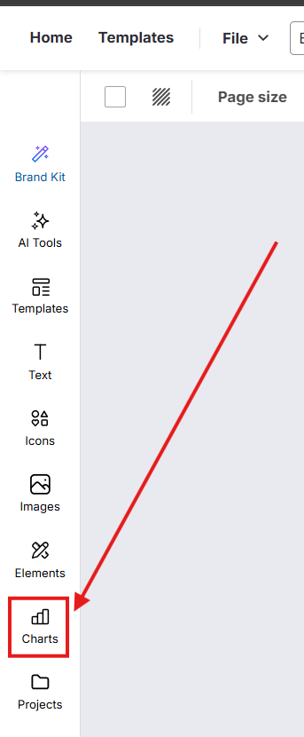 Haz clic en Charts en la barra lateral izquierda para abrir el menú de gráficos.