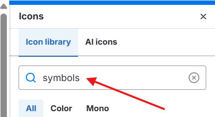 Escribe “Símbolos” en la barra de búsqueda para explorar.