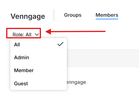 ➡️ Usa el filtro desplegable de Role para ver solo Admins, Members o Guests.