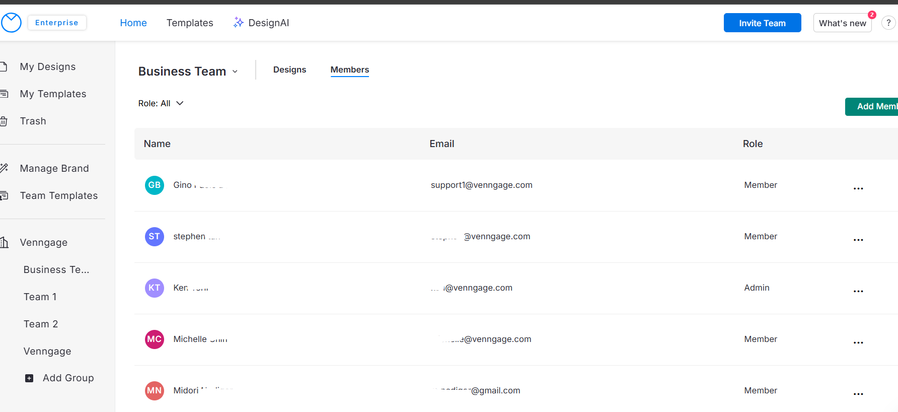 Si te han asignado el rol de Admin en Venngage, tienes más control que un Member estándar. Como Admin, puedes: