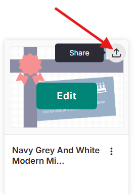 Pasa el cursor sobre el diseño que deseas compartir y haz clic en Share.
