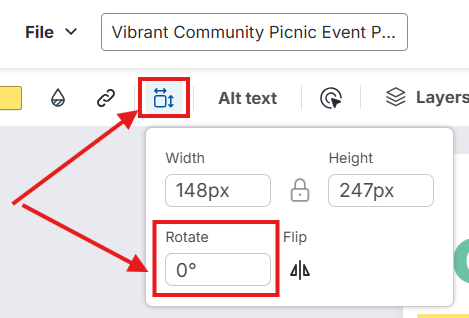 En la barra superior, haz clic en Redimensionar objeto para abrir las opciones de rotación y volteo.