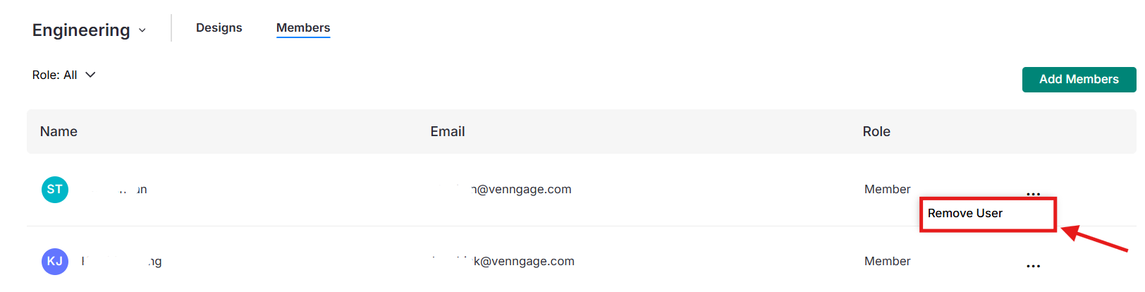 Esta acción también eliminará cualquier diseño que el Miembro haya compartido en el Grupo.