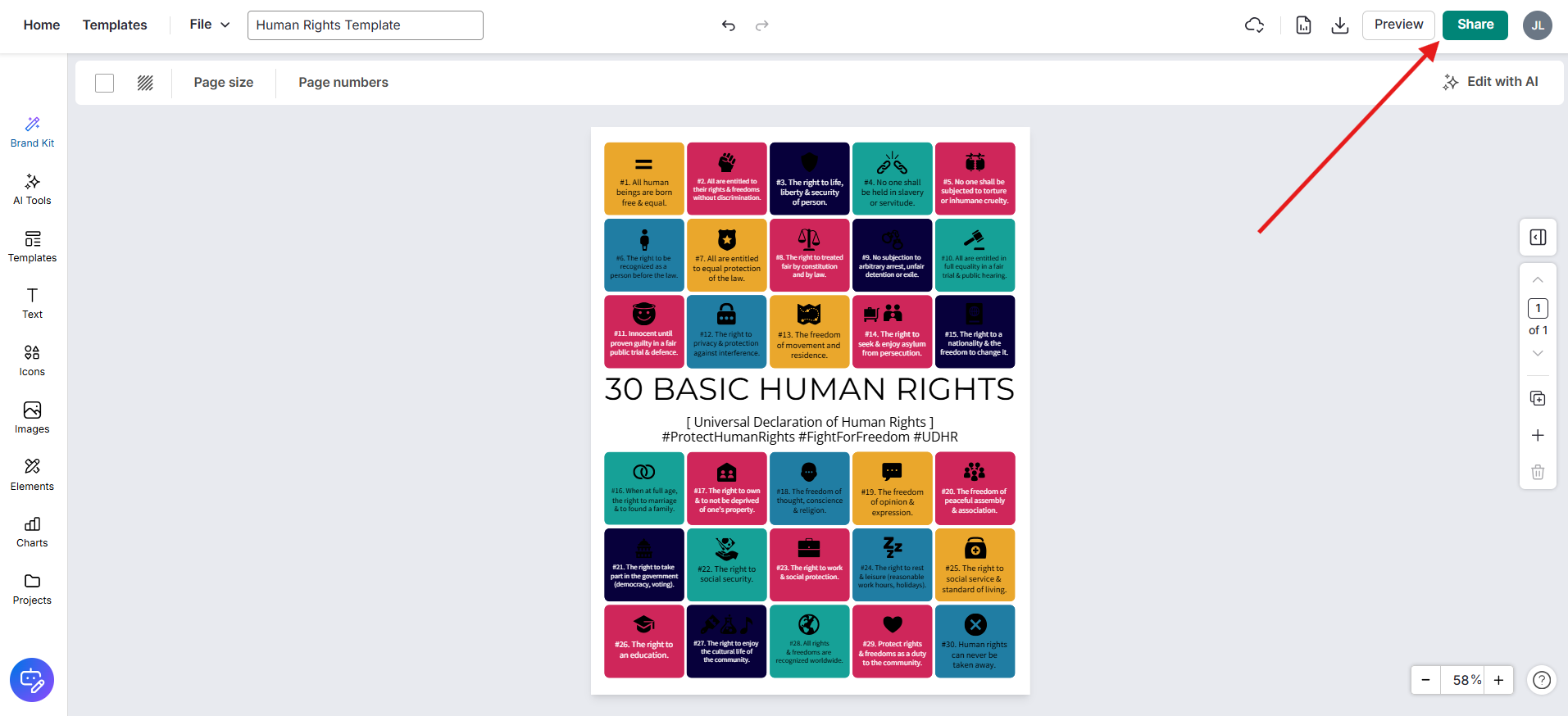 Haz clic en el botón verde Compartir en la barra de herramientas superior (junto al botón Vista previa).