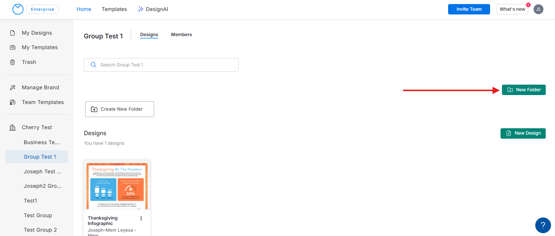 Haz clic y mantén presionada la miniatura del diseño en el Grupo, luego arrástrala a la Carpeta deseada.