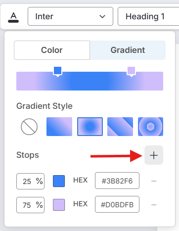 💡 Consejo: Puedes volver a un color sólido en cualquier momento seleccionando Sin degradado en la sección de Estilo de degradado.