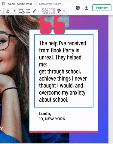 - Agregue un cuadro de texto; luego seleccione el estilo de lista en la barra de herramientas superior para aplicarlo a todo el cuadro de texto. Escriba los elementos de su lista, presionando 'Return' (Enter) para comenzar una nueva viñeta o elemento numerado a medida que avanza.