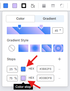 Para añadir otro color, haz clic en el ícono más (+) en la barra del degradado y elige el color.