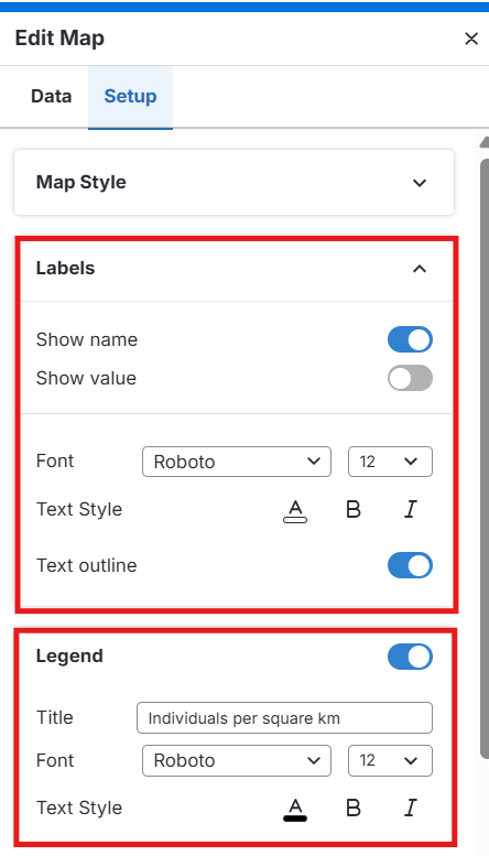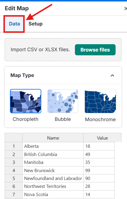 En el panel Editar Mapa, ve a la pestaña Datos.