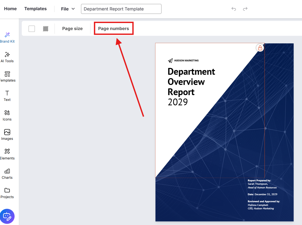 Mantén tus diseños de varias páginas organizados y fáciles de seguir agregando números de página en Venngage. Ya sea que quieras numerar todas las páginas o solo algunas, puedes personalizarlo en solo unos clics.