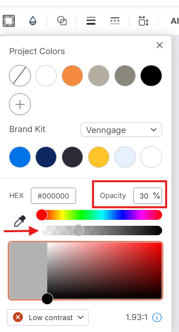 Modificar a opacidade usando o controle deslizante ou inserindo um valor manualmente