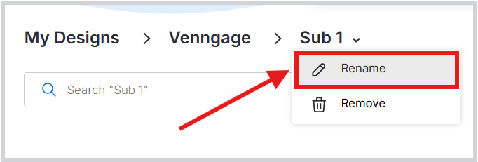 Puedes renombrar cualquier subcarpeta que hayas creado en Mis Diseños o dentro de un Grupo.