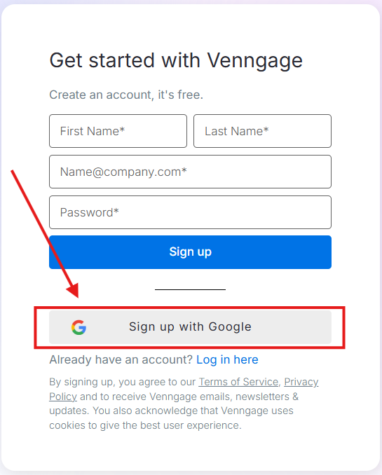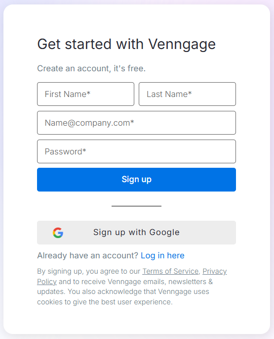 👉 Une fois votre compte créé, vous pouvez revenir sur Venngage à tout moment et vous connecter avec votre adresse e-mail et votre mot de passe.